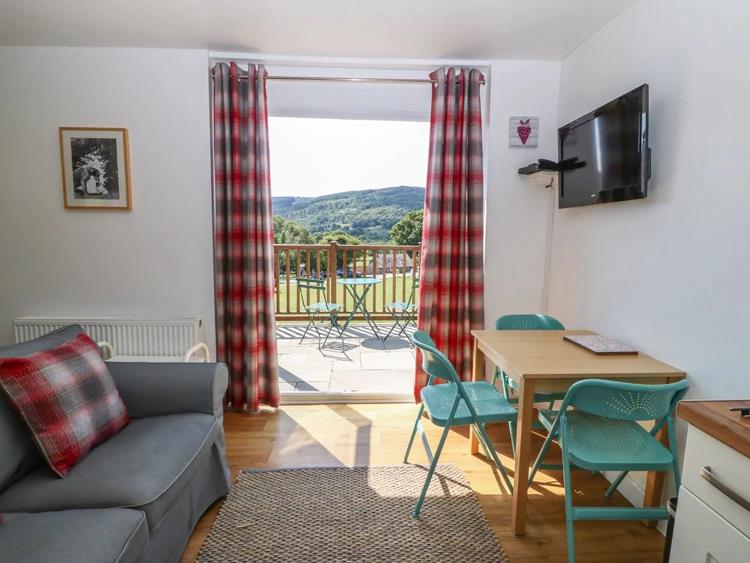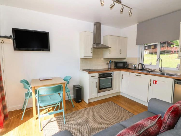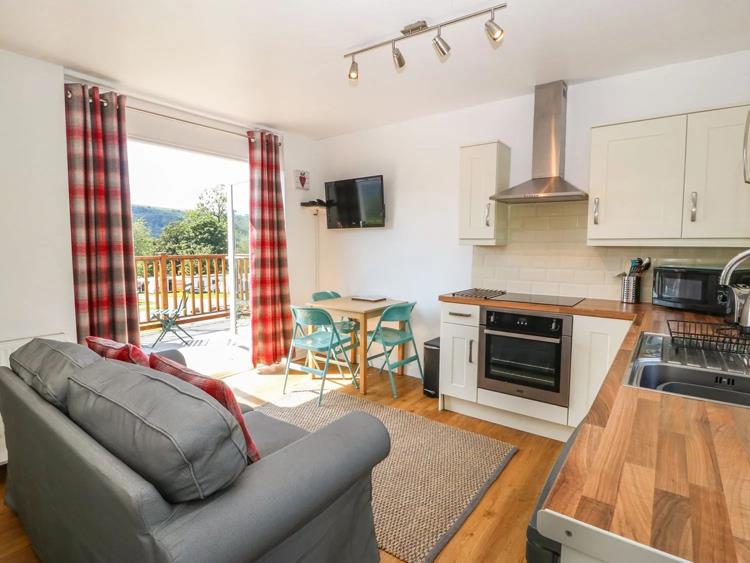 The lodge has an open plan living space, with patio doors onto the veranda, a fully fitted kitchen including dishwasher.