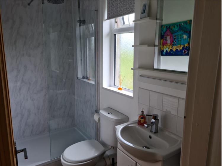 The bedroom has fitted wardrobe, and a double bed, whilst the spacious bathroom has a walk in shower.