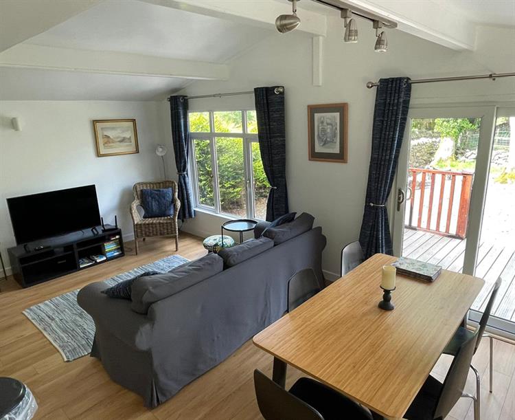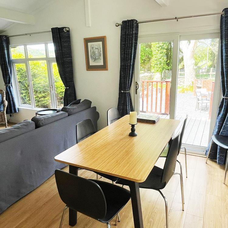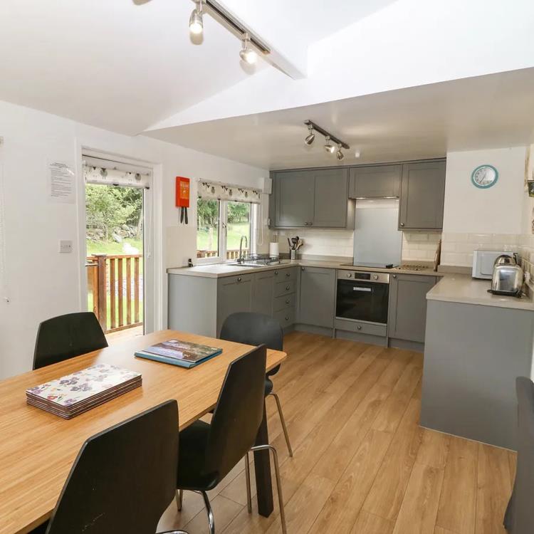 There is a spacious open plan living area, dining area and a fully fitted kitchen, including a dishwasher. The lodge has central heating and internet access.